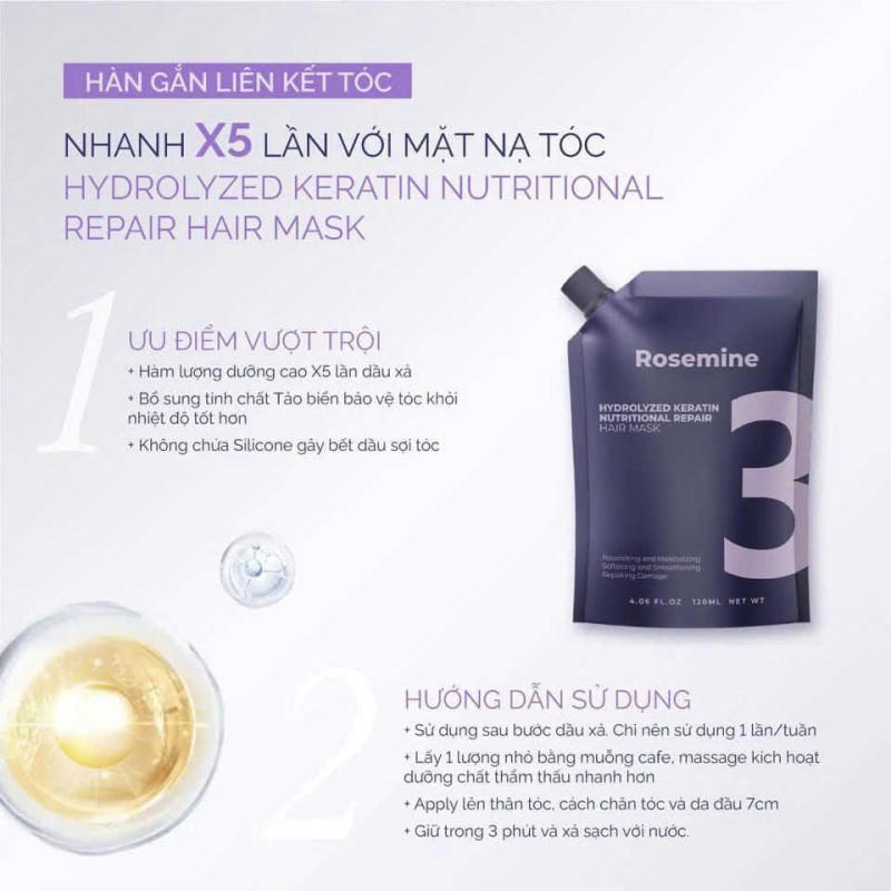✅ Phục hồi tóc hư tổn, tái tạo tóc chắc khỏe.