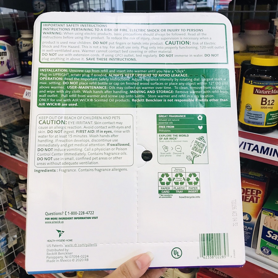 - Bộ Tinh Dầu Thơm Cắm Điện Air Wick bao gồm: 1 đầu cắm điện + 9 refill (lọ tinh dầu thay thế). Giá quá bèo cho 405 ngày sử dụng!!!