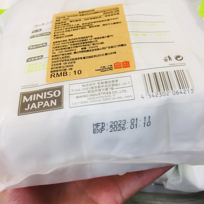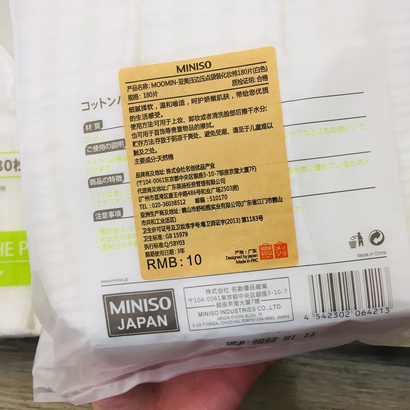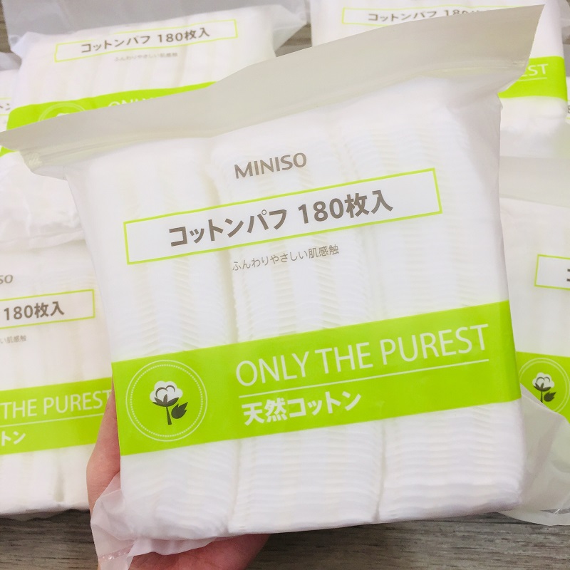Bông tẩy trang Miniso được làm từ chất liệu Cotton 100% hữu cơ có bề mặt mềm mại, mịn màng, không gây tổn thương, trầy xước khi tiếp xúc với da. Miếng bông thấm hút dung dịch tốt hơn, làm sạch da hiệu quả hơn, giúp da luôn láng sạch, mịn màng. Bông tẩy trang của thương hiệu Miniso Nhật Bản.