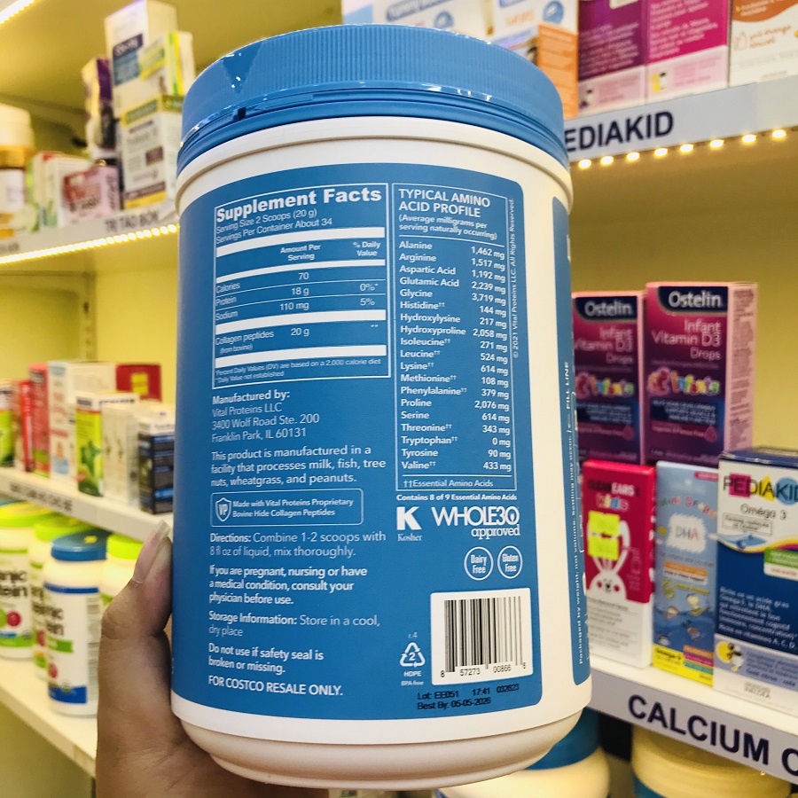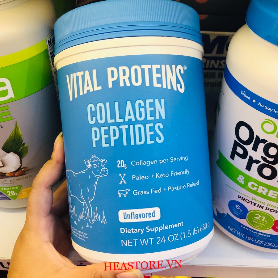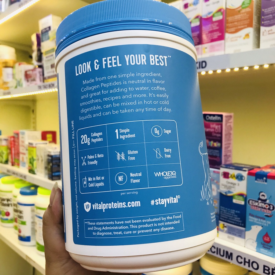 - Hàm lượng collagen peptide trong Vital Proteins Collagen Peptides Unflavored được lấy từ protein collagen bò nuôi trên đồng cỏ tự nhiên, đảm bảo tiêu chuẩn chất lượng cao và không nhiễm chất độc hại.