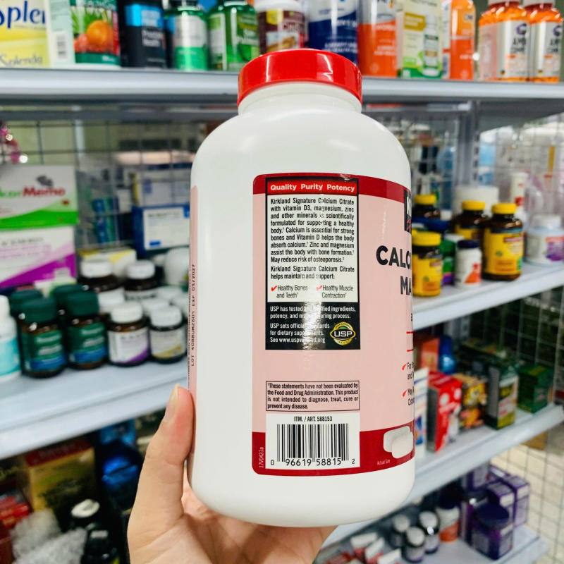💖 Viên uống Kirkland Calcium Citrate Magnesium and Zinc - 500 Viên là lựa chọn hoàn hảo cho những ai muốn bổ sung canxi, magie, kẽm và vitamin D3 để hỗ trợ xương chắc khỏe, phòng ngừa loãng xương và tăng cường sức khỏe tổng thể.