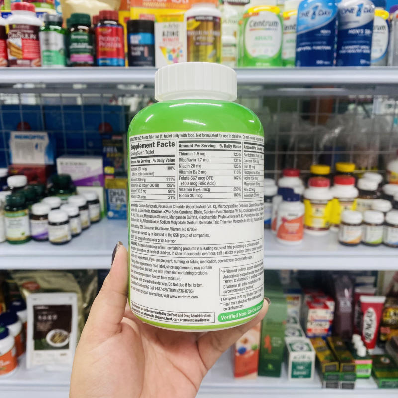 Vitamin B và sắt trong viên vitamin tổng hợp của Mỹ Centrum Adults cung cấp năng lượng hàng ngày cho cơ thể.