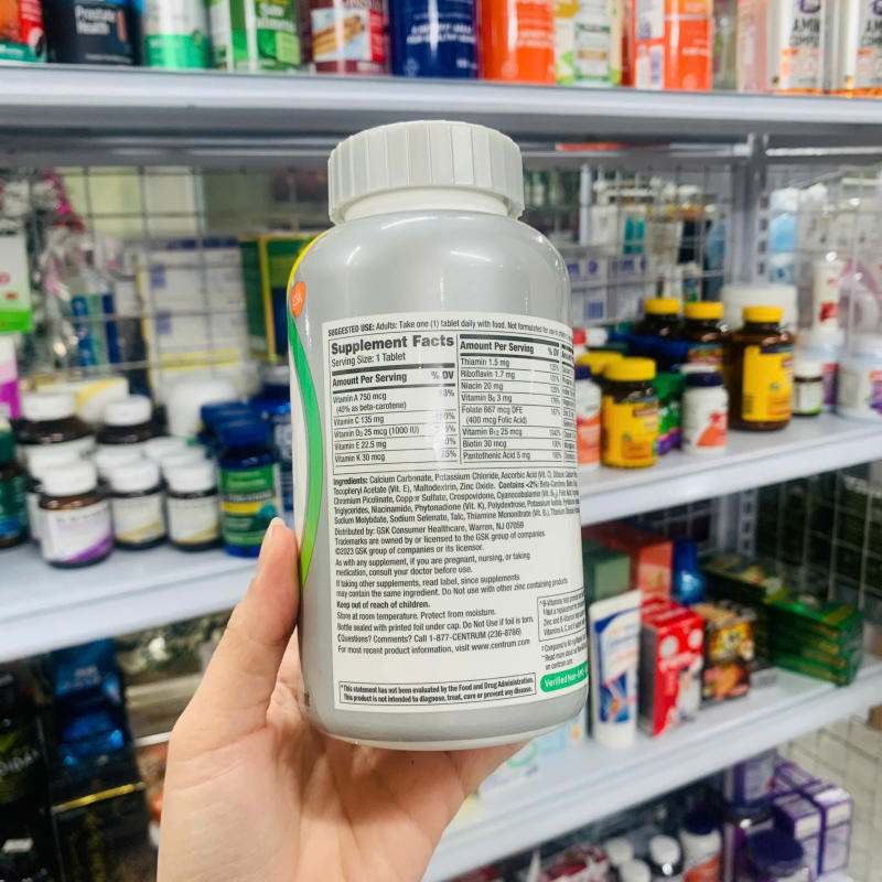 - Sản phẩm chính hãng từ thương hiệu Centrum - Thương hiệu Multivitamin số 1 tại Mỹ.