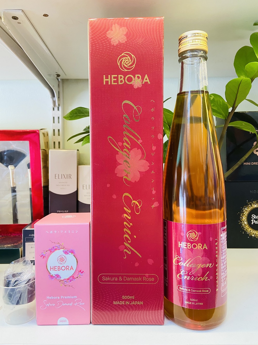 Nước uống Hebora Collagen Phiên Bản Mới 2020: Có cải tiến vượt trội về thành phần nguyên liệu tăng gấp 3 lần Collagen so với mẫu cũ. (cụ thể mới tăng 160.000mg/ cũ 50.00mg ), Vitamin C + Vitamin B1. Giúp Collagen dễ dàng hấp thụ và chuyển hóa, tăng cường hiệu quả Collagen cũng như khả năng dưỡng trắng da. Ngoài ra, nước uống Collagen Hebora phiên bản mới ngoài Hoa Hồng Damask Rose còn được bổ sung thêm tinh chất Hoa Anh Đào Yoshino giúp tăng khả năng tỏa hương gáp 3 lần so với phiên bản cũ. Chưa hết, tinh chất Yoshino còn được kiểm chứng có khả năng vượt trội trong quá trình tái tạo Collagen và giảm thâm nám hiệu quả. Nước uống Collagen Hebora Phiên Bản Mới mang đến 4 công dụng vượt trội: