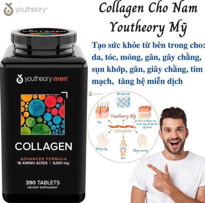 - Men collagen Youtheory hỗ trợ bổ sung collagen giúp chống nhăn, ngăn chặn quá trình lão hóa da hiệu quả.
