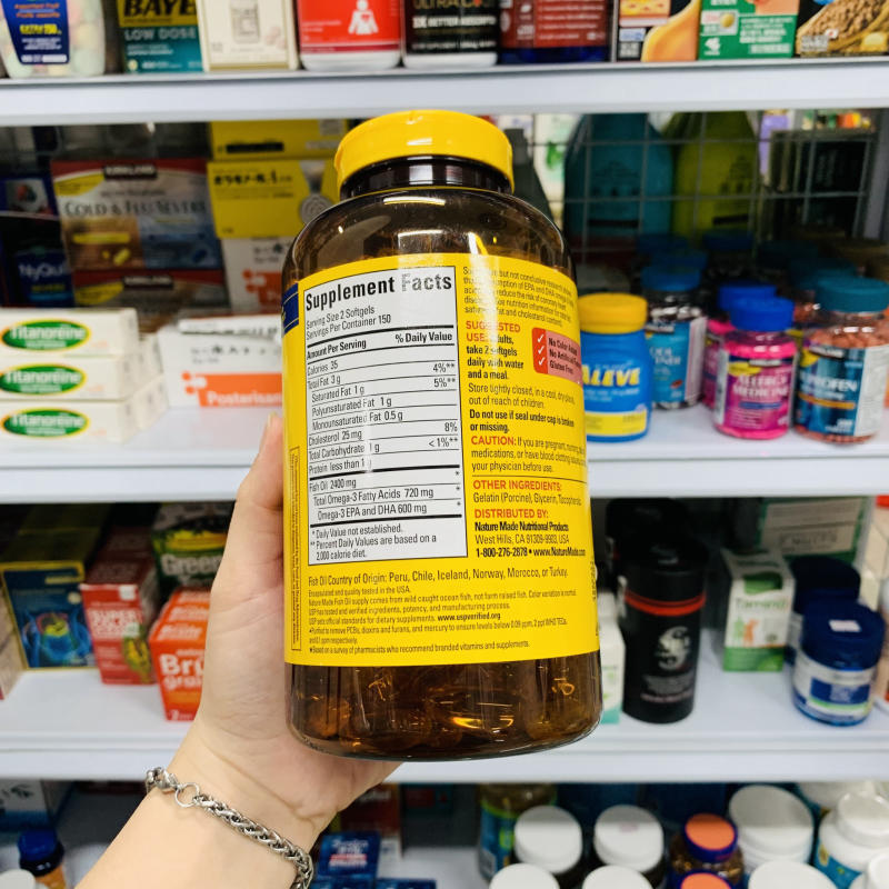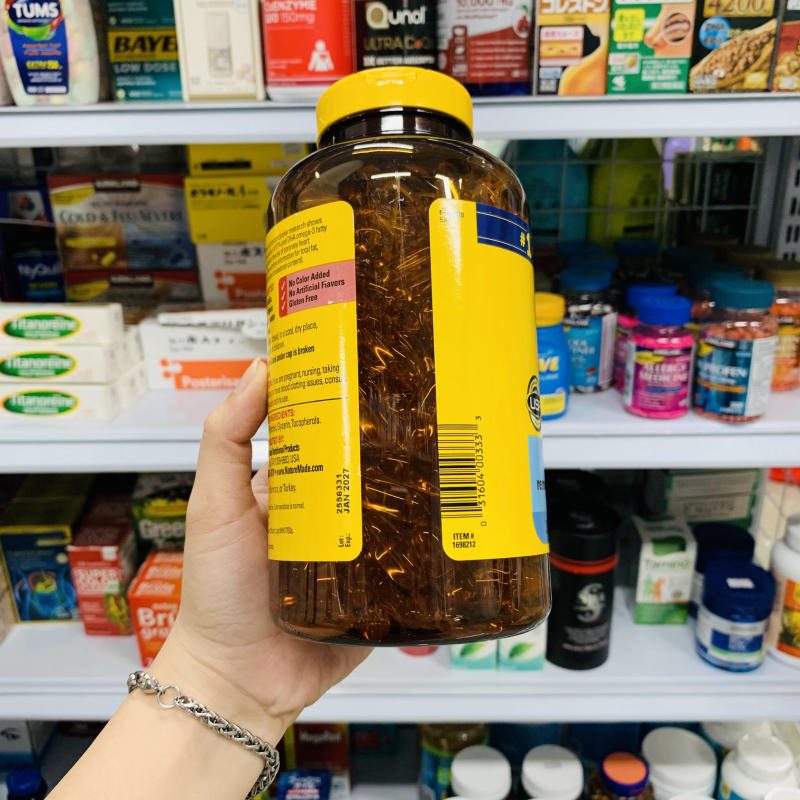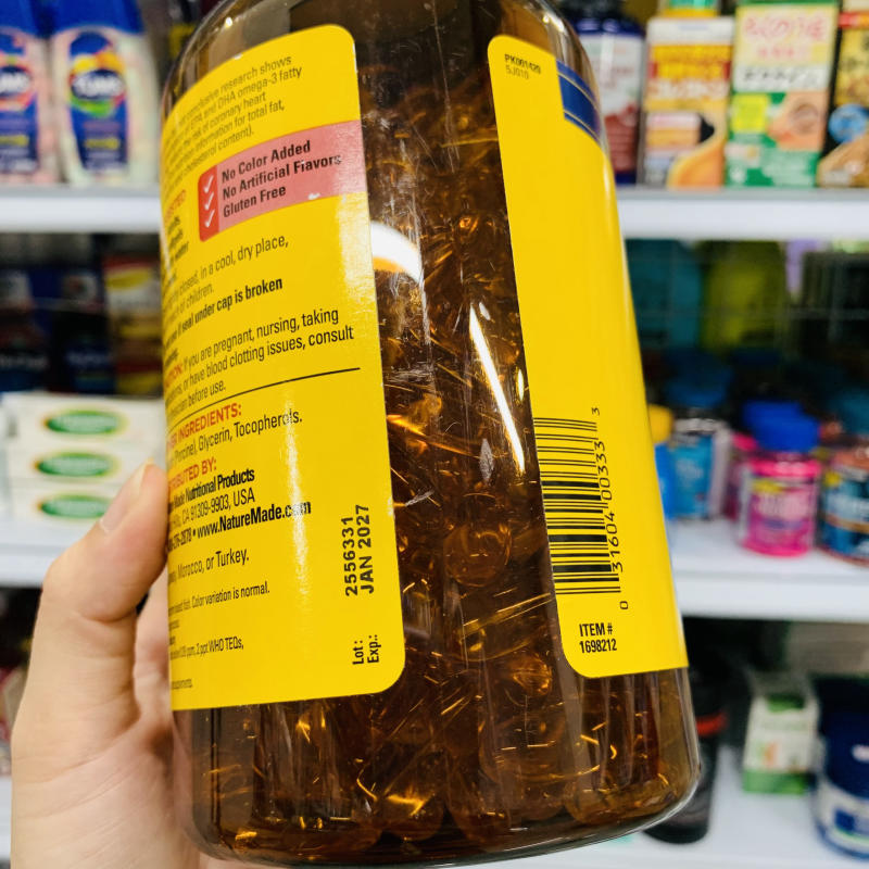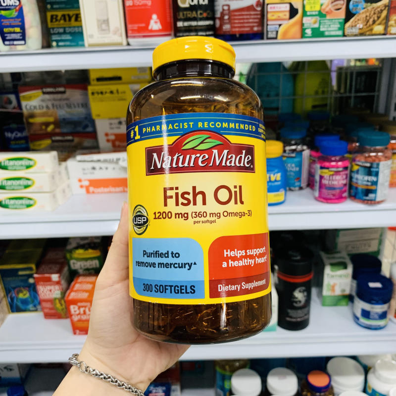 - Liệu trình sử dụng: Uống 2 viên Nature Made fish oil 360 mg omega-3/ngày, uống trong bữa ăn.