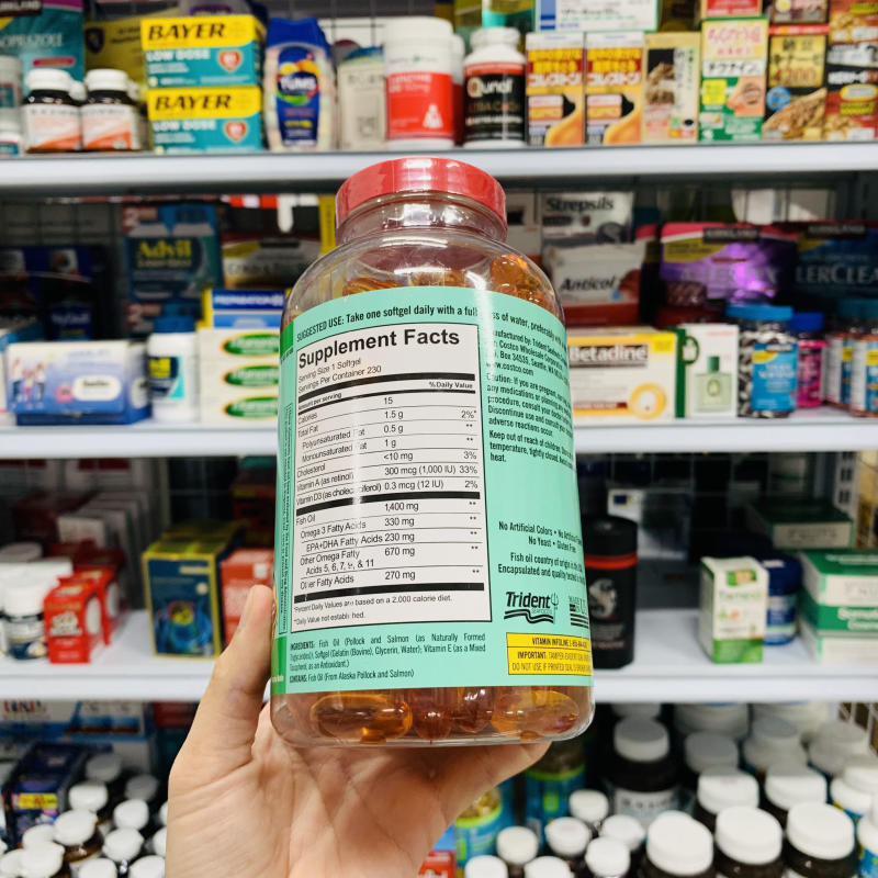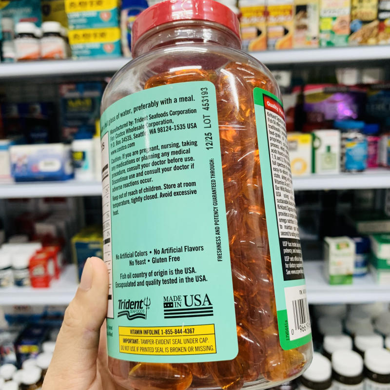 Bạn có thể nạp dầu cá vào cơ thể bằng cách thêm cá trong bữa ăn hoặc sử dụng sản phẩm bổ sung dạng viên để hỗ trợ cung cấp omega - 3 và các chất dinh dưỡng tốt cho cơ thể. Sản phẩm Kirkland Wild Alaskan Fish Oil 1400mg được biết đến là dầu cá được chiết xuất từ cá hồi của vùng biển lạnh Alaska sạch trên thế giới với quy trình ép lạnh hiện đại, hỗ trợ giữ được những thành phần dưỡng chất Axit béo quan trọng.