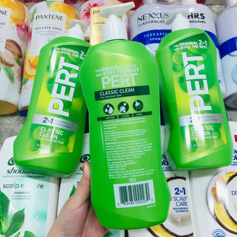 - Dầu Gội + Xả 2 In 1 Pert Plus của Mỹ loại 1 lít kết hợp hai trong một vừa làm sạch vừa dưỡng da đầu và tóc giúp tóc khỏe và chắc hơn.