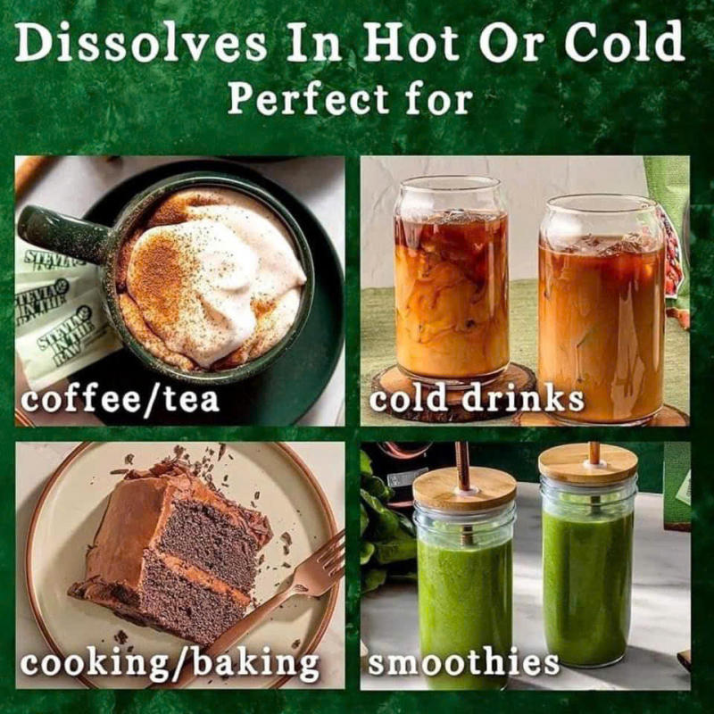 Stevia In The Raw làm tăng độ ngọt cho những thức uống hàng ngày của bạn, cà phê, latte, trà đá, ngũ cốc,... hoặc làm gia vị nấu ăn, làm bánh. Sản phẩm hoàn toàn từ thực vật thuần chay, không chứa calo nên người bị tiểu đường hay người béo phì hoàn toàn yên tâm sử dụng.