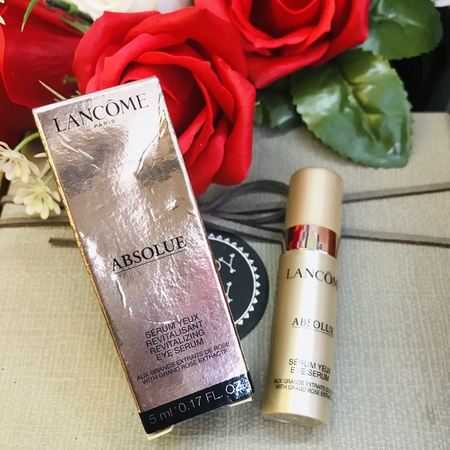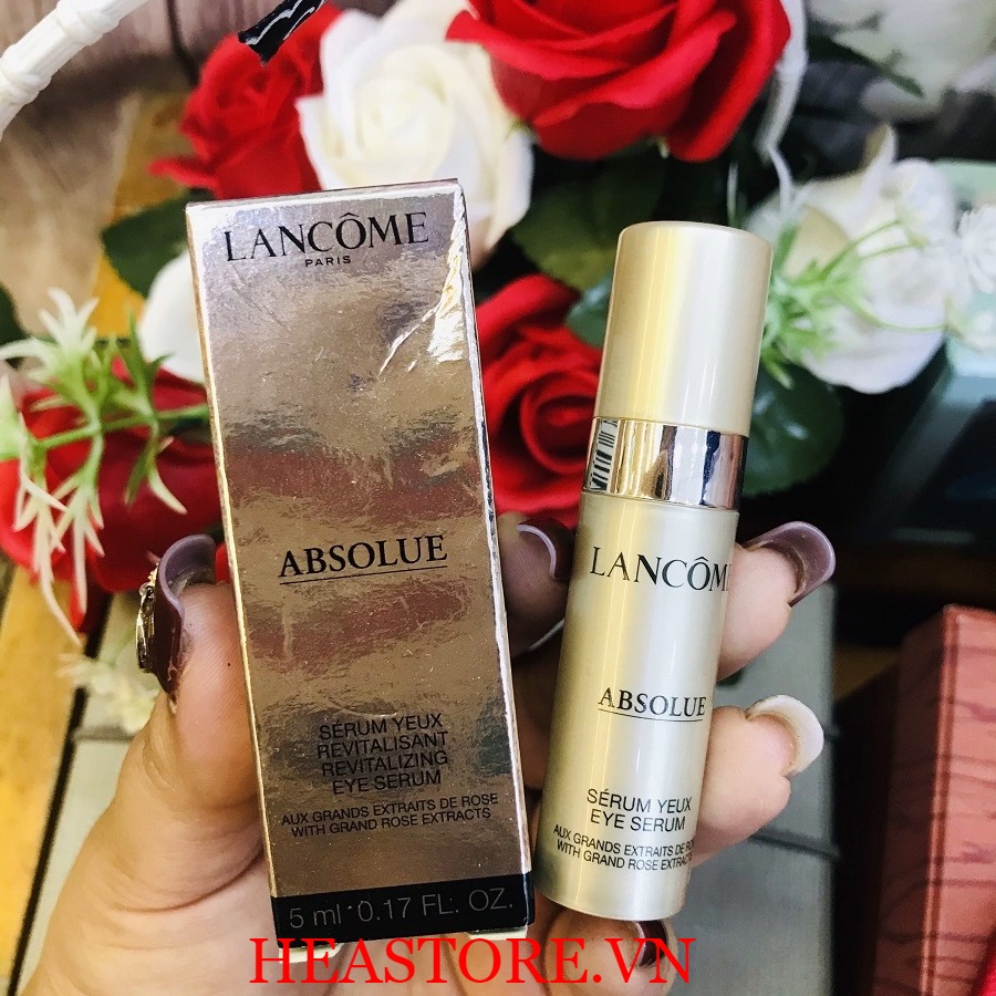 Tinh chất mắt Lancome Absolue Eye Serum with ROSE extracts tái tạo tế bào gốc 5ml: Loại kem dưỡng cao cấp dòng Absolue trẻ hóa làn da xung quanh mắt bằng cách phục hồi độ săn chắc vùng da này, xóa nhăn và làm sáng rạng rỡ, loại bỏ thâm quầng thiếu sức sống. Chống lão hóa cho mắt và tái tạo tế bào gốc.