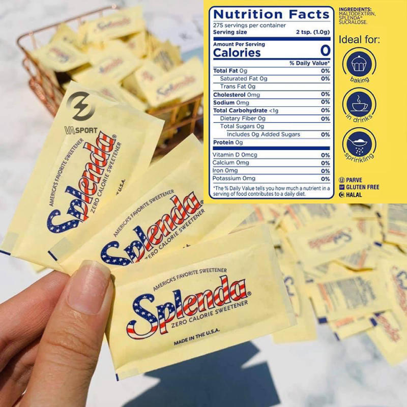 Mỗi gói thay thế đường Splenda 1 gram cung cấp vị ngọt tương tự hai muỗng cà phê đường. Trong mỗi gói chứa ít hơn 1 gram carbohydrate và ít hơn 5 calo. Những chỉ số này đáp ứng tiêu chuẩn của FDA đối với thực phẩm không có calo.