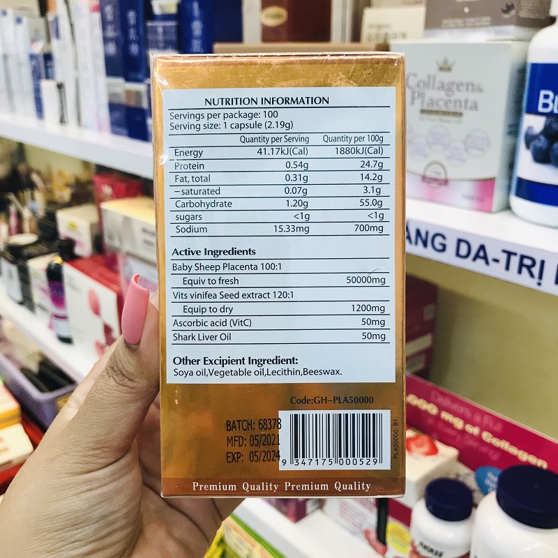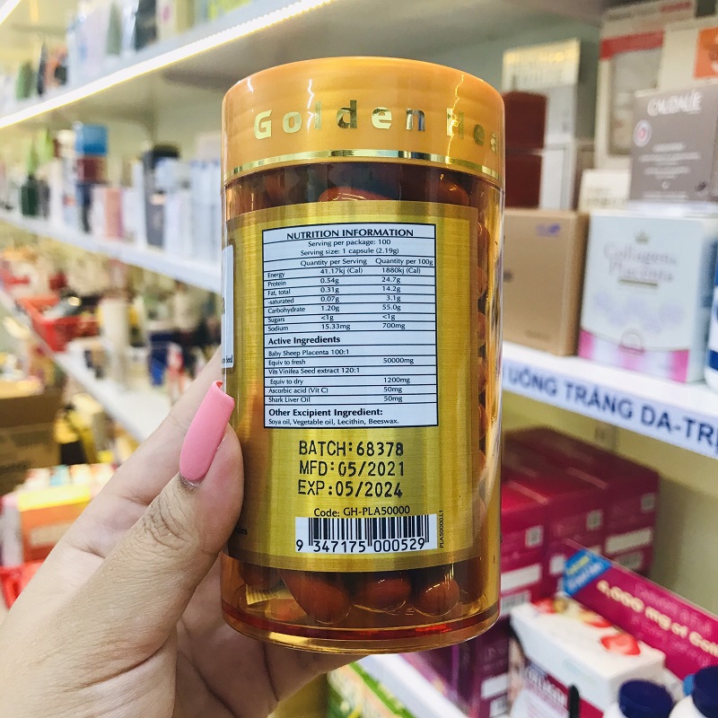 - Mỗi viên nhau thai cừu golden health 50000mg có chứa các tinh chất dầu gan cá mập, Vitamin C, hạt nho và các thành phần xử lý đặc biệt chiết xuất từ các bộ phận lành mạnh của những con cừu con. Nó chứa các tế bào động vật có chất lượng cao, hàm lượng protein sinh học, các axit amin và các yếu tố dinh dưỡng khác.