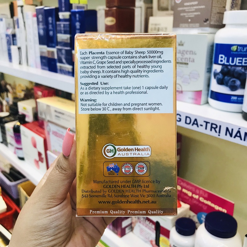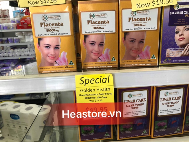 Golden Health Placenta 50.000mg với chiết xuất nhau thai cừu thiên nhiên, giúp xoá mờ vết thâm, sạm nám và tàn nhang trên da, làm giảm nếp nhăn, tăng cường sức sống làm trẻ hoá làn da, tăng sinh lực cho cơ thể và chống lão hóa.