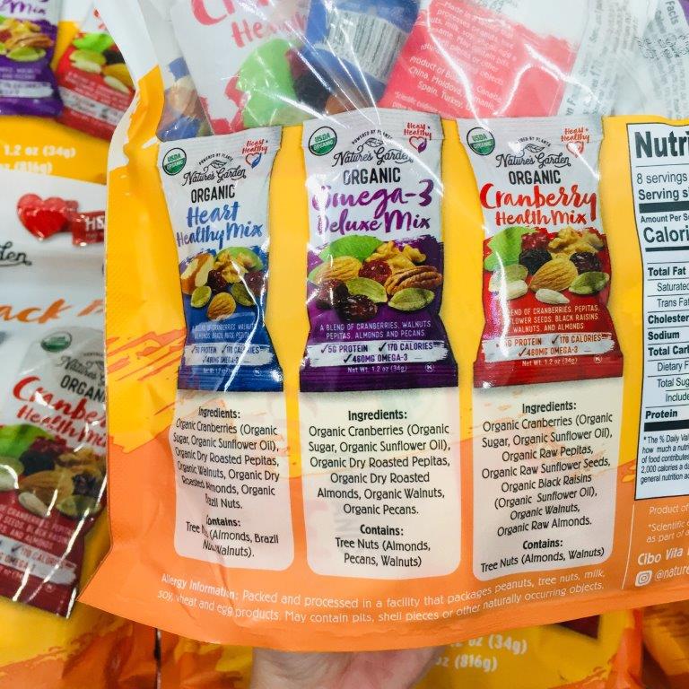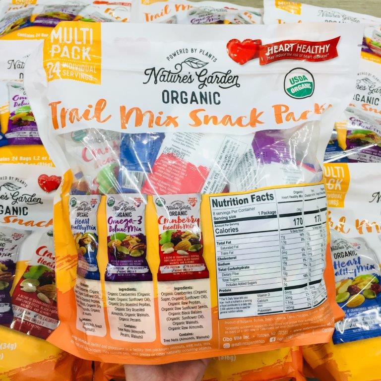 Gói này là sự kết hợp của các loại trái cây và hạt sấy khô cao cấp, thuộc dòng hàng ORGANIC – HỮU CƠ nên các thành phần chính cũng như phụ gia như đường hay dầu tẩm trong nó cũng là hữu cơ nha.