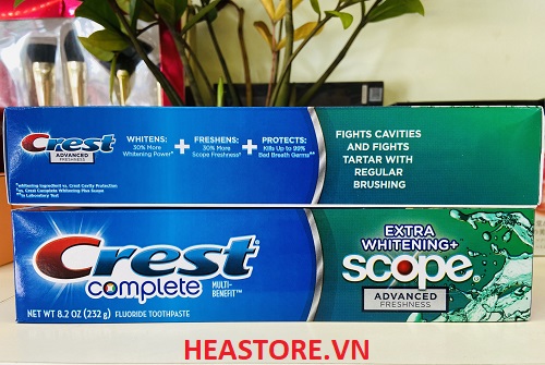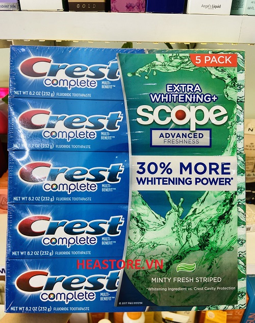 Khi kem đánh răng Crest kết hợp với nước súc miệng Scope, hiệu quả không thể phủ nhận. Không nơi nào mà bạn có thể trải nghiệm việc làm sạch và trắng răng từ Crest Complete cùng với sự gia tăng của hương vị Scope thơm mát. Phản ứng hóa học hoàn hảo này cho phép bạn tìm thấy hiệu quả trong mọi tình huống.