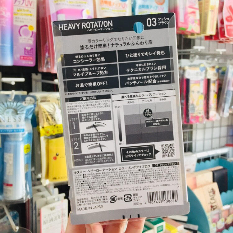 Bên cạnh những loại mascara dành cho mắt, thương hiệu Isehan Nhật Bản đã tạo ra sản phẩm mascara dành cho lông mày, với công thức mềm mượt, sắc màu bền lâu trôi. Sử dụng mascara chải lông mày Isehan Kiss Me Heavy Rotation Coloring Eyebrow sẽ mang lại đôi chân mày dày tự nhiên, đều và phù hợp với màu tóc của bạn.