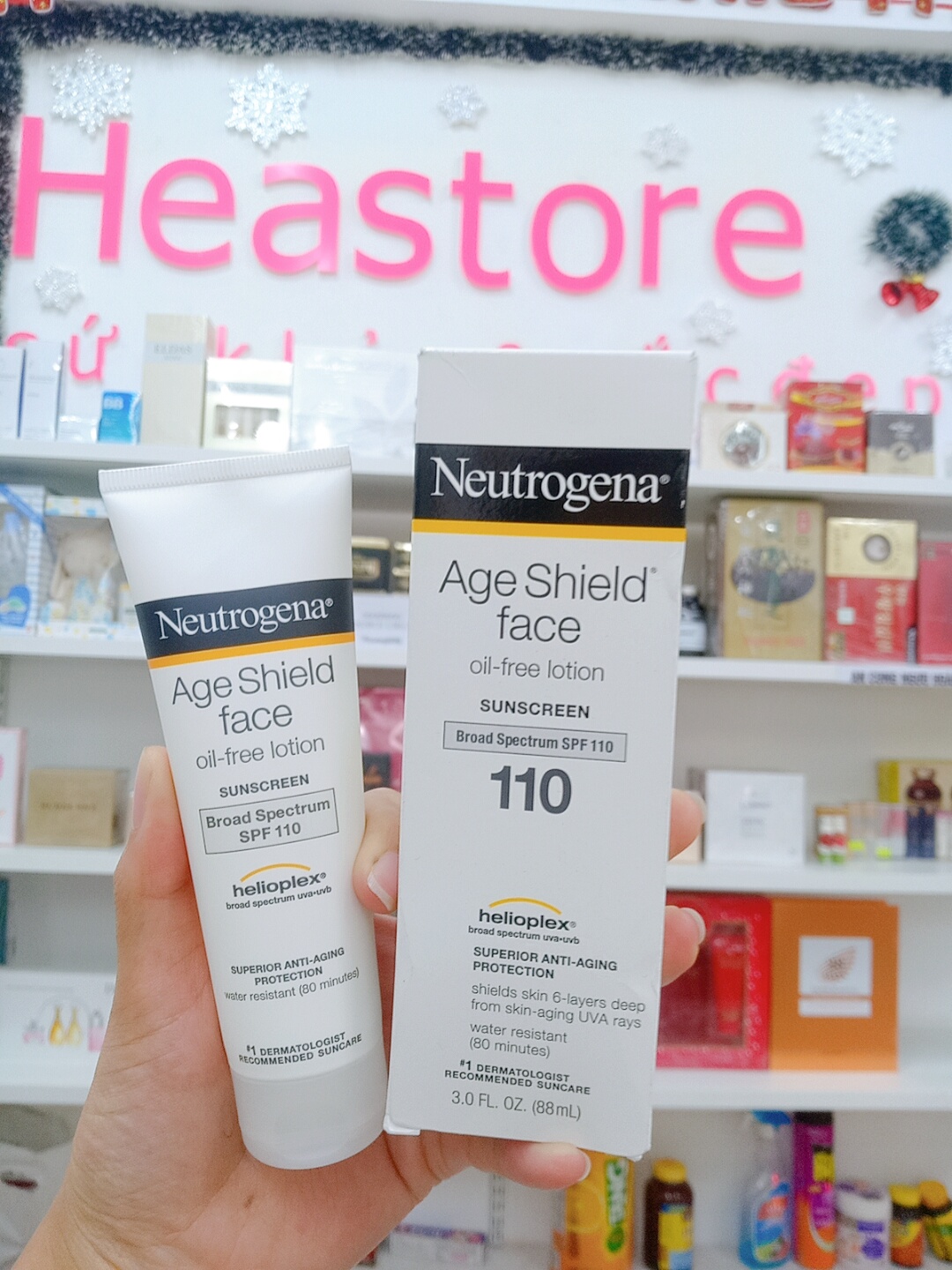 - Neutrogena Age Shield Face Suncreen (new version) mang đến cho bạn sự bảo vệ hiệu quả cao khỏi tia UVA và UVB bằng công nghệ mới Helioplex®, Neutrogena® Age Shield Face SPF 70 bảo vệ bạn lâu dài khỏi gần như 100% các tia UV mà các sản phẩm khác không làm được.