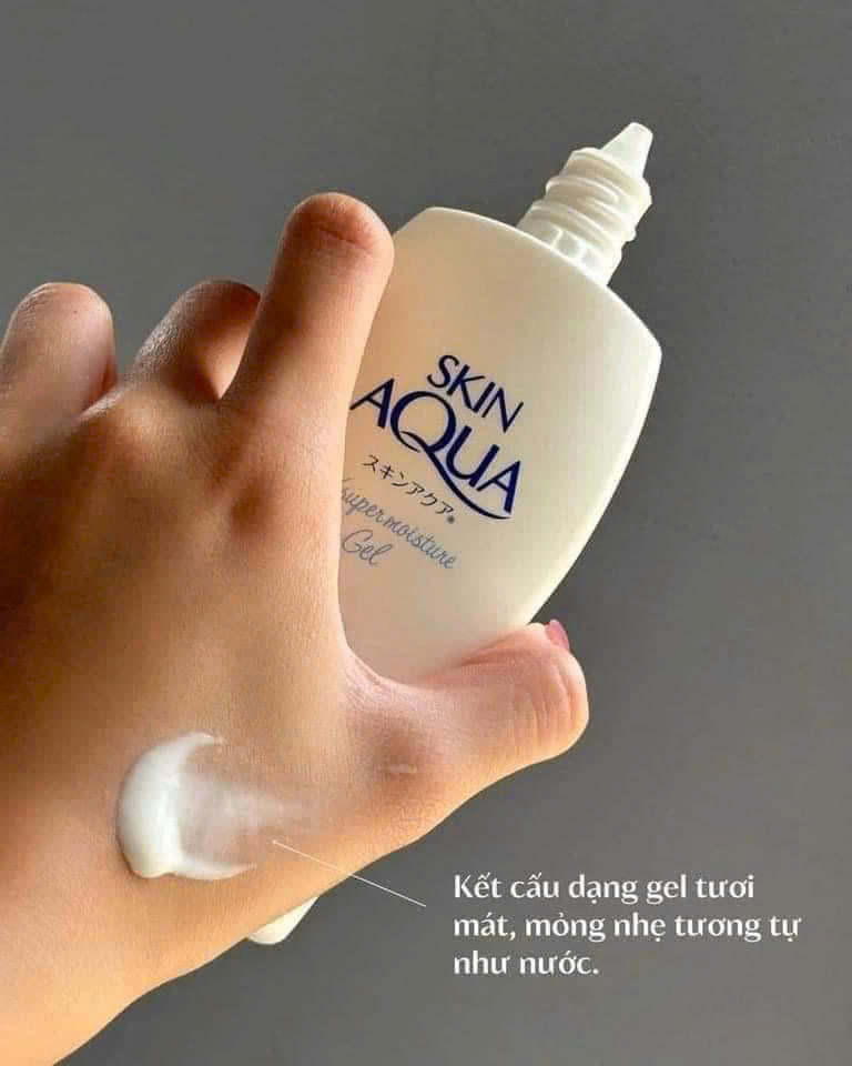 Kết cấu dạng gel tươi mát, mỏng nhẹ tương tự như nước, chứa 4 thành phần siêu cấp ẩm: super hyaluronic acid, natri hyaluronate, collagen thủy phân, axit amin giúp dưỡng ẩm cấp nước cho da, tránh tình trạng bết rít vón cục khi bôi kem chống nắng.
