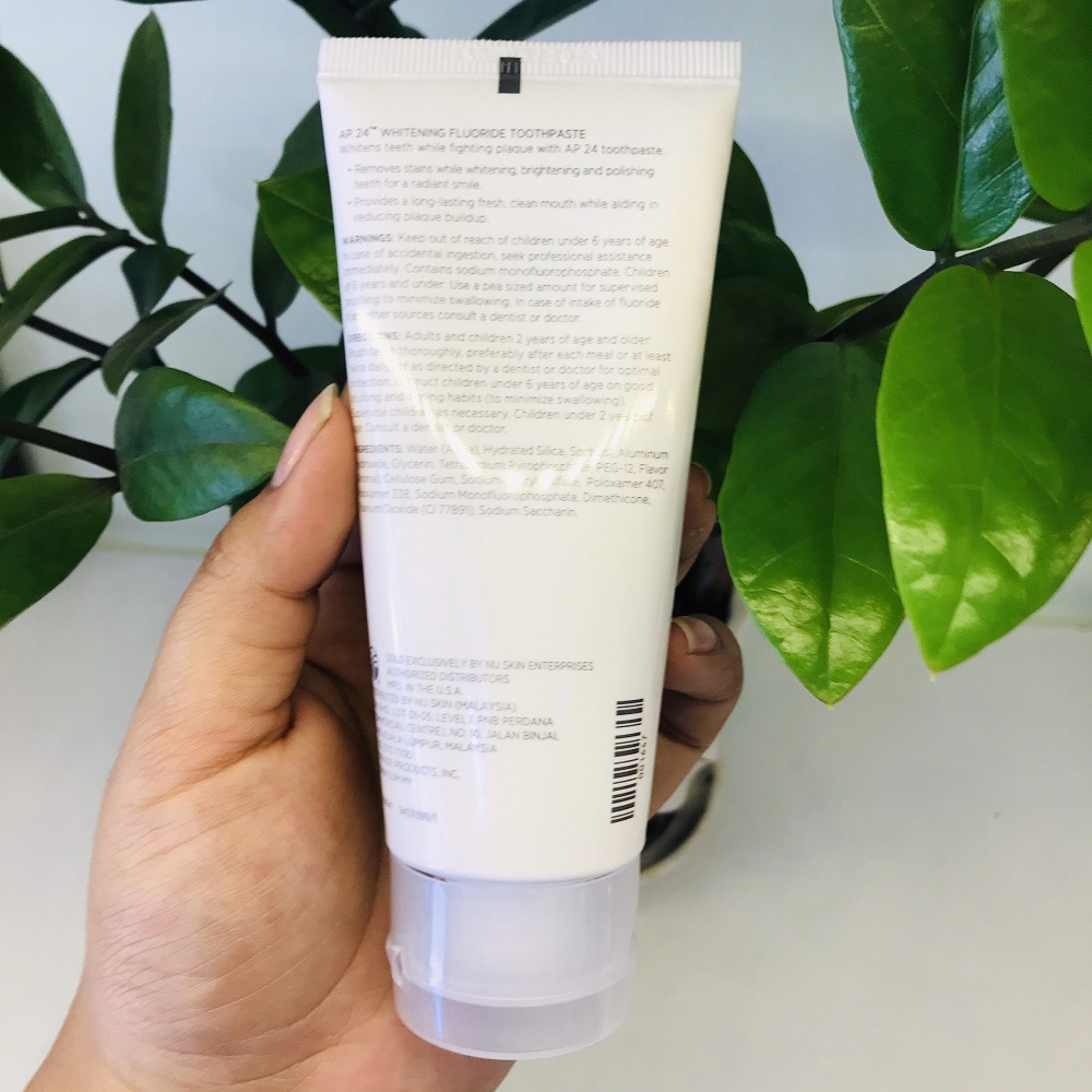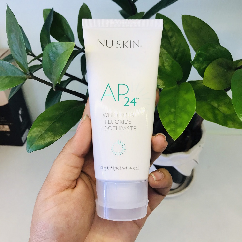 - Kem đánh răng AP24 Whitening Flouride Toothpaste là sản phẩm từ thương hiệu nổi tiếng Nuskin, kem đánh răng AP24 được sản xuất từ Mỹ, tích hợp các thành phần chuyên dụng giúp bảo vệ tốt cho răng miệng
