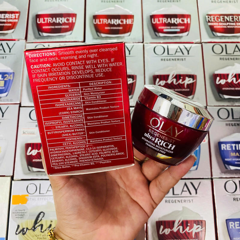Khi bị thiếu ẩm, làn da bạn sẽ trở nên sần xùi, lỗ chân lông to và kém sức sống hơn hẳn. Đây là nguyên nhân chính dẫn đến vấn đề da bị lão hóa nhanh chóng khiến bạn trông già nua. KEM DƯỠNG ẨM VÀ CHỐNG LÃO HOÁ OLAY REGENERIST ULTRA RICH HYDRATING MOISTURIZER ( VẠCH XANH) chứa công thức Amino Peptide và Vitamin B3 có tác dụng cung cấp, giữ ẩm và tái tạo tế bào da do đó vẻ ngoài của làn da như được thay mới và tươi trẻ.