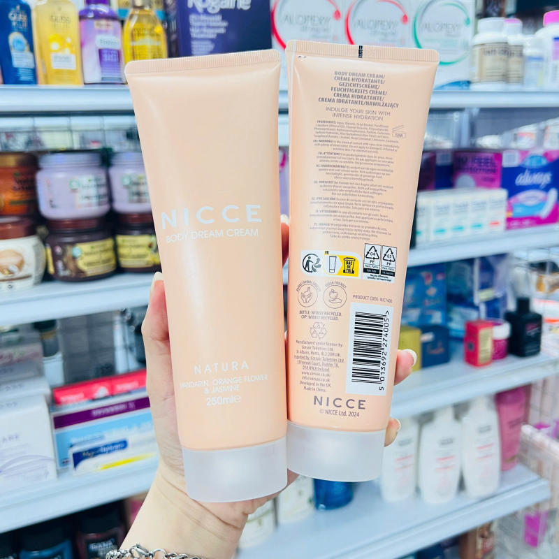 NICCE Body Dream Cream là dòng kem dưỡng body cao cấp đến từ Nhật Bản, nổi bật với kết cấu mịn nhẹ, dễ thẩm thấu và khả năng dưỡng trắng – làm mềm da hiệu quả. Không gây bết rít, bí da, mang đến làn da mịn màng, thơm lâu suốt ngày dài.