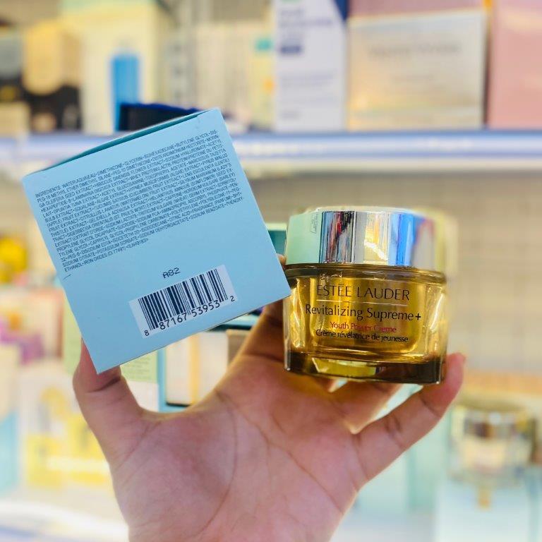Kem dưỡng da mặt chống lão hóa Estée Lauder Revitalizing Supreme+ 50ml tăng độ đàn hồi da, chống lại các dấu hiệu lão hóa như các vết chân chim, nếp nhăn. Trị da mất độ săn chắc, lu mờ và mất nước. Cung cấp nước, giúp dưỡng ẩm cho da mang lại làn da đàn hồi Săn chắc, mềm mại, dẻo dai hơn và có khả năng tái sinh tốt hơn Đã được bác sỹ da liễu kiểm nghiệm, không gây mụn hay gây kích ứng da.