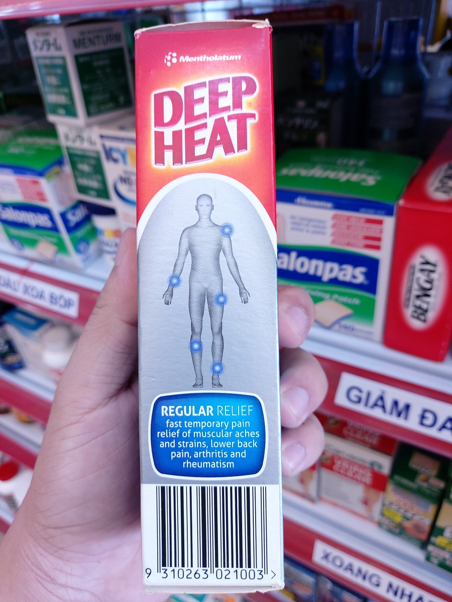 – Kem thấm đều trên da và tạo cảm giác thật dễ chịu ngay khi dùng: Deep Heat Regular Rub là một loại kem có tính kiềm. Kem có thể thấm đều trên những vùng da nhiều lông như da tay và da chân. Sau khi thoa sẽ cho cảm giác thật dễ chịu và hiệu quả này kéo dài rất lâu. Về độ nóng của dầu được nhà sản xuất đánh giá là khá nóng như hình thang điểm độ nóng từ 0 đến 10 thì deep heat regular relief ở mức 7.