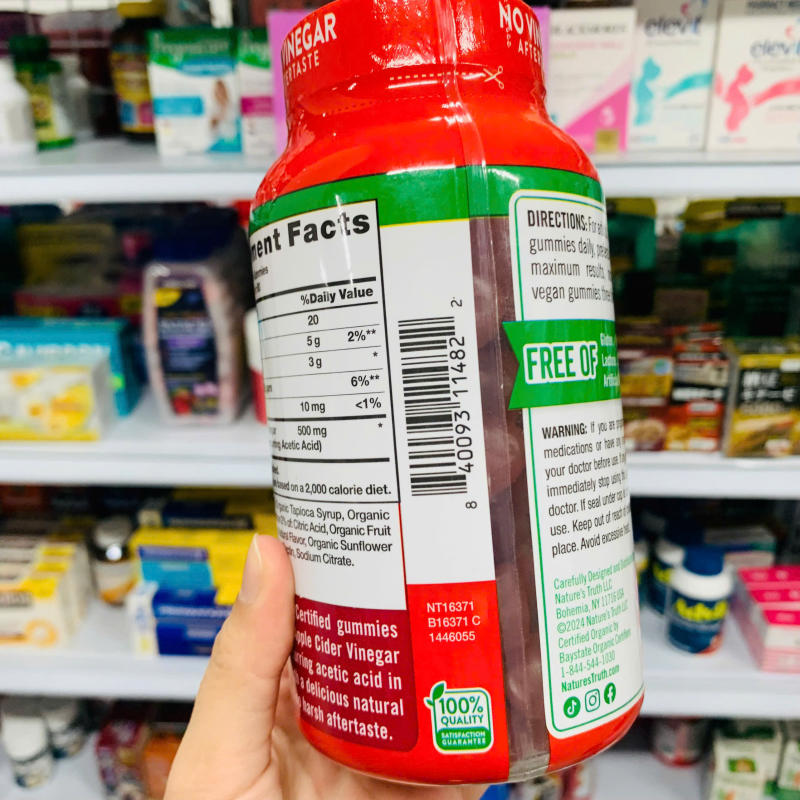 ➦ Viên kẹo dẻo giấm táo Apple Cider Vinegar được điều chế từ nguồn nguyên liệu hữu cơ Organic. Đặc biệt quy trình hiện đại đạt tiêu chuẩn USP, được FDA Hoa Kỳ thông qua và kiểm định khắt khe trước khi ra thị trường. Viên kẹo dẻo giấm táo không chứa thêm chất bảo quản, chất hóa học, tạo màu, gluten,... nên yên tâm khi sử dụng.