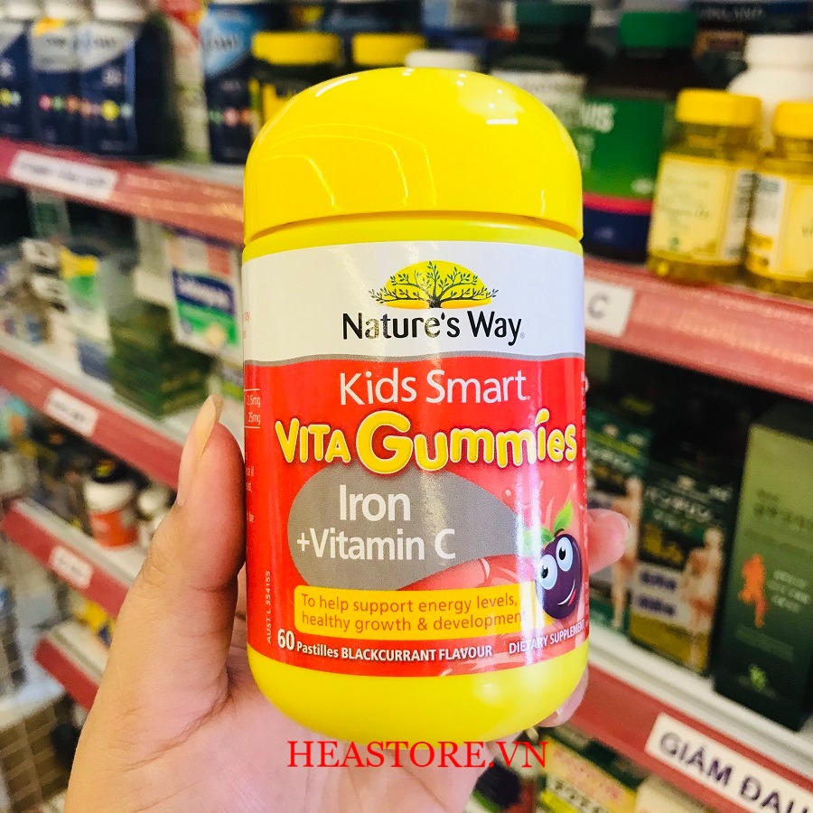 Kẹo dẻo Nature's Way Kids Smart Vita Gummies 60 Viên là sản phẩm được nghiên cứu và sản xuất bởi các chuyên gia hàng đầu về sức khỏe cho trẻ em đến từ cơ quan Nature”s Way giúp bổ sung vitamin C và SẮT dành cho trẻ em trên 2 tuổi một cách an toàn và hiệu quả nhất. Sản phẩm dẻo mềm thơm ngon giúp trẻ dễ uống mỗi ngày.