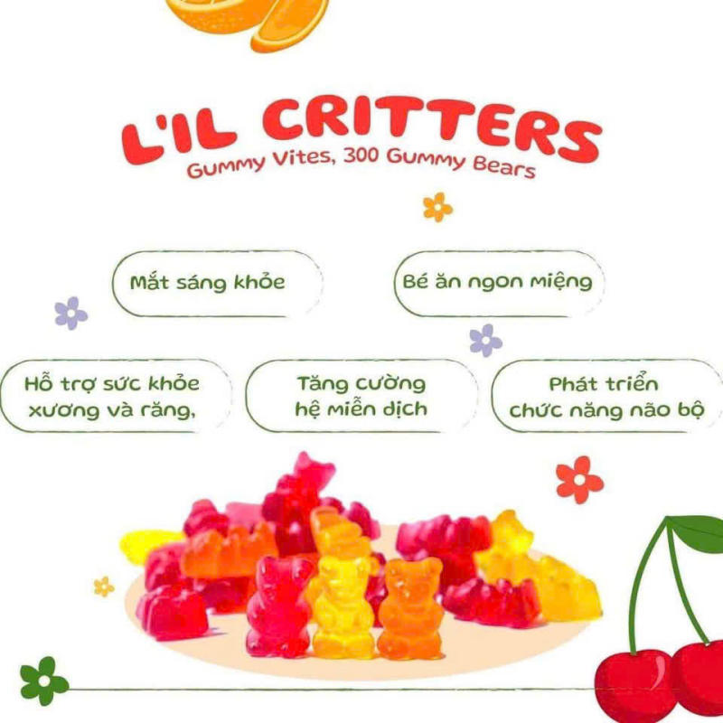 - Kẹo dẻo Gummy Vites bổ sung Vitamin L’il Critters 300 viên giúp bổ sung đầy đủ vitamin và khoáng chất cần thiết cho trẻ, hỗ trợ sức khoẻ toàn diện.