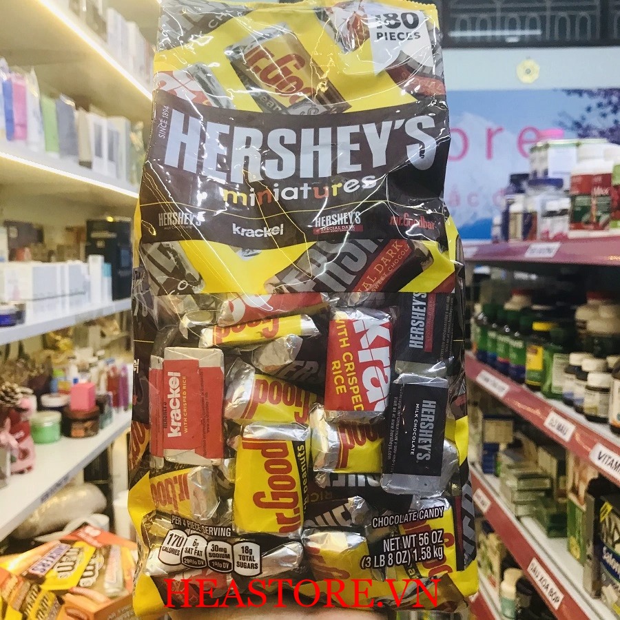 Chocolate là loại thực phẩm ngọt nổi tiếng toàn thế giới với hương vị vô cùng quyến rũ, không chỉ ngon mà còn được coi là món quà ngọt ngào thể hiện cho tình yêu. Hershey Company là nhà máy sản xuất chocolate lớn nhất thế giới từ năm 1905 tại Pennsylvania - Mỹ, cho đến nay có trên 80 sản phẩm về kẹo chocolate và hôm nay chúng tôi sẻ giới thiệu đến bạn kẹo chocolate Hersheys Miniature.