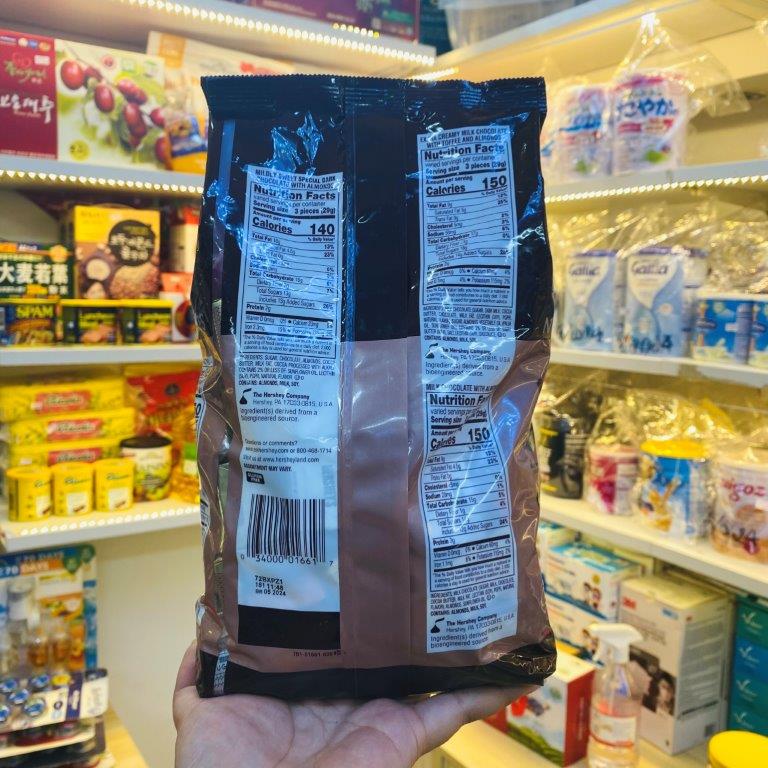 + Trong 1 bịch là hỗn hợp của nhiều loại socola socola đen, socola sữa nhân hạnh nhân, socola sữa, socola kem sữa nhân hạnh nhân.