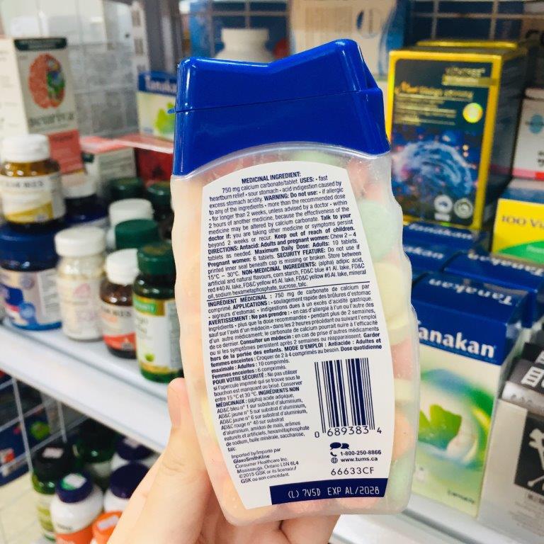 🌸 Tums Antiacid and Calcium Supplement Extra Strength 750 được nghiên cứu với công thức đặt biệt giúp điều hòa lượng axit trong dạ dạy, ngoài ra còn bổ sung thêm calcium giúp xương chắc khỏe. Với hương vị trái cây thơm ngon, dễ dàng sử dụng không những đẩy lùi các chứng khó tiêu, đầy hơi, ợ chua… mà còn làm cho bạn có cảm giác ngon miệng hơn khi ănTums Extra Strength là viên nhai được chiết xuất từ những thành phần thiên nhiên lành tính giúp hỗ trợ cải thiện các vấn đề về da dày như: hỗ trợ giảm tình trạng ợ nóng, đầy hơi, giúp người dùng ăn ngon miệng hơn. Sản phẩm có hương vị trái cây nhiệt đới, thơm ngon, dễ sử dụng.