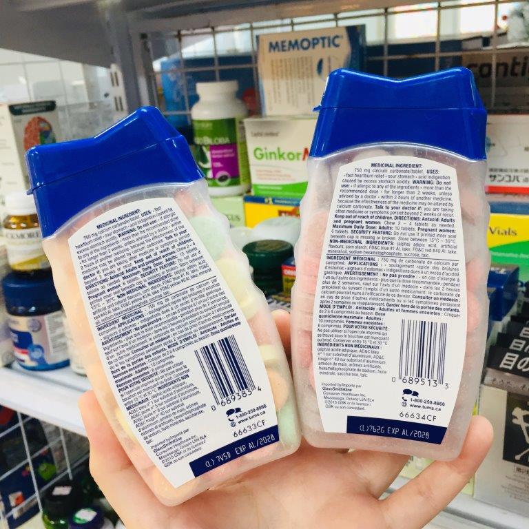 - Viên nhai viên nhai Tums Extra Strength chứa dược chất là các chất kiềm yếu có tác dụng hỗ trợ trung hòa acid dịch vị, hỗ trợ làm giảm độ chua trong dạ dày xuống