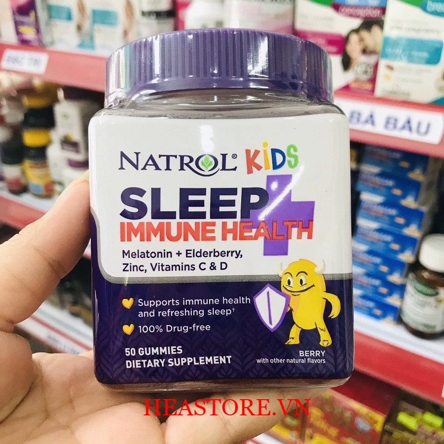 Kẹo dẻo giúp bé ngủ ngon, tăng sức đề kháng Natrol Kids Sleep+ Immune Health Gummies cung cấp sự kết hợp mạnh mẽ của Melatonin, Quả cơm cháy (Elderberry), Vitamin C & D và Kẽm để hỗ trợ sức khỏe miễn dịch của trẻ và mang lại cho trẻ một giấc ngủ ngon.