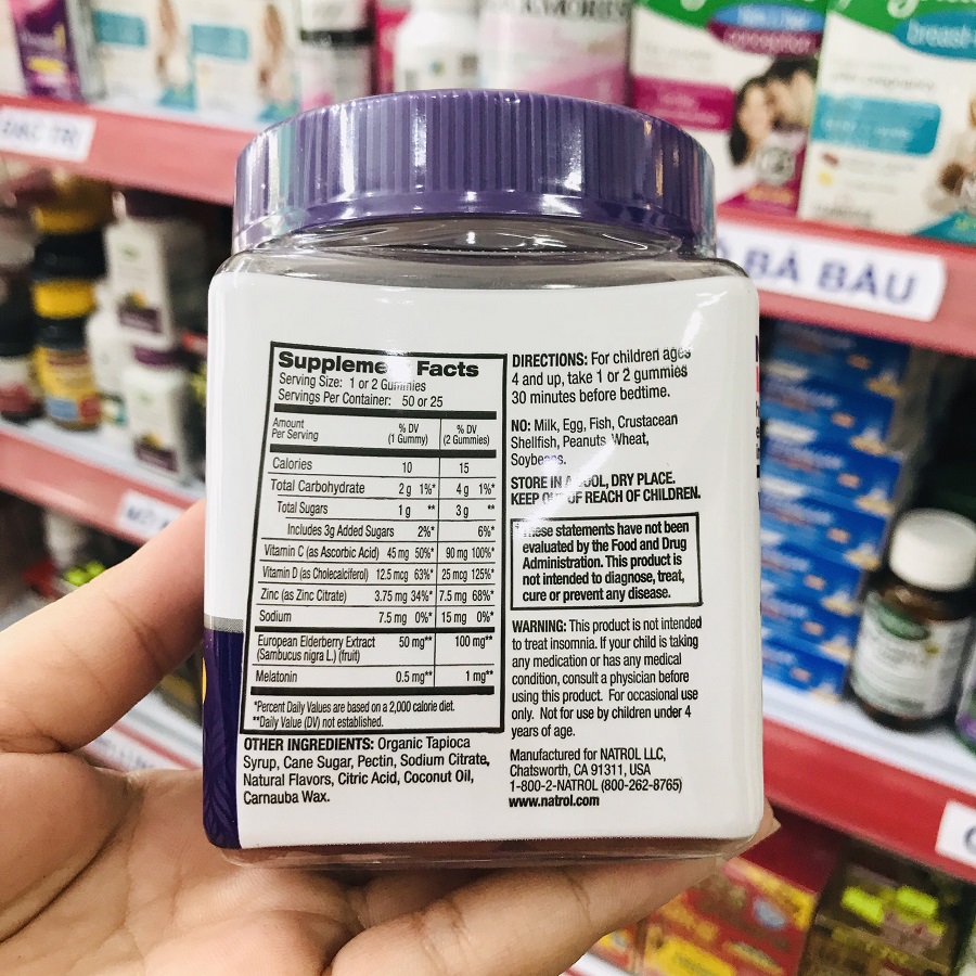 Thành phần kẹo dẻo giúp bé ngủ ngon Natrol Kids Sleep+ Immune Health Gummies