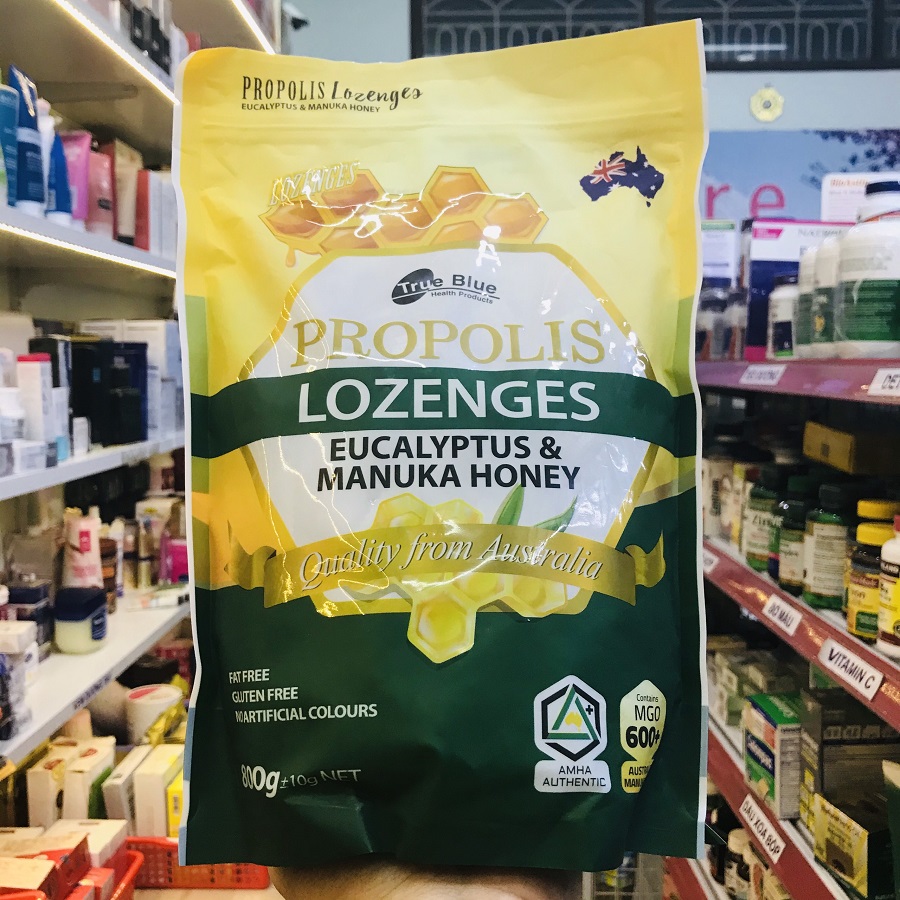 Ngoài ra kẹo ngậm True Blue Propolis Lozenges Eucalyptus & Manuka Honey: