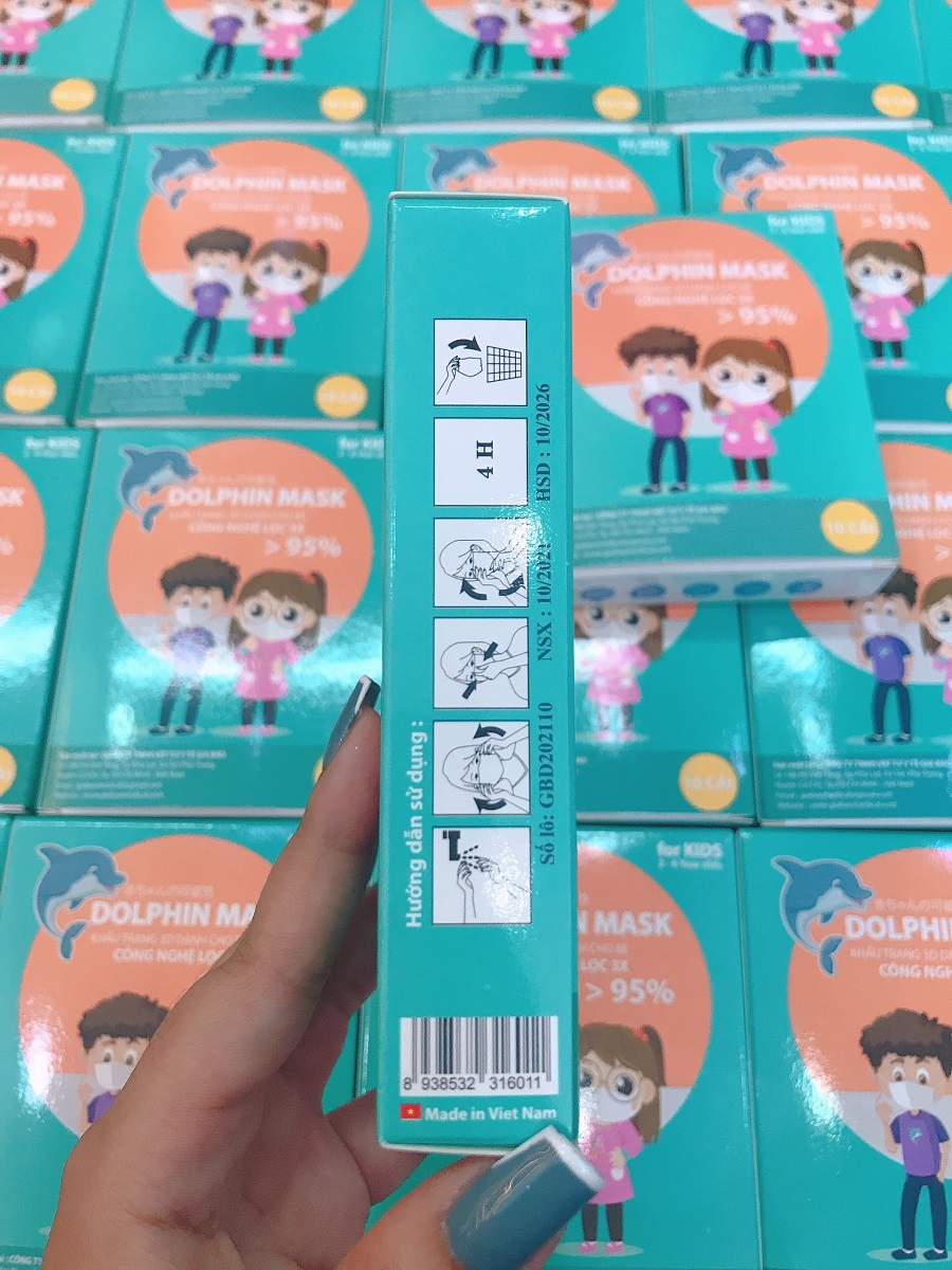 Khẩu trang em bé DOLPHIN Mask Kháng khuẩn có tác dụng cực tốt để ngăn ngừa vi khuẩn, bụi mịn và các bệnh lây qua đường hô hấp nhờ lớp lọc SMS.
