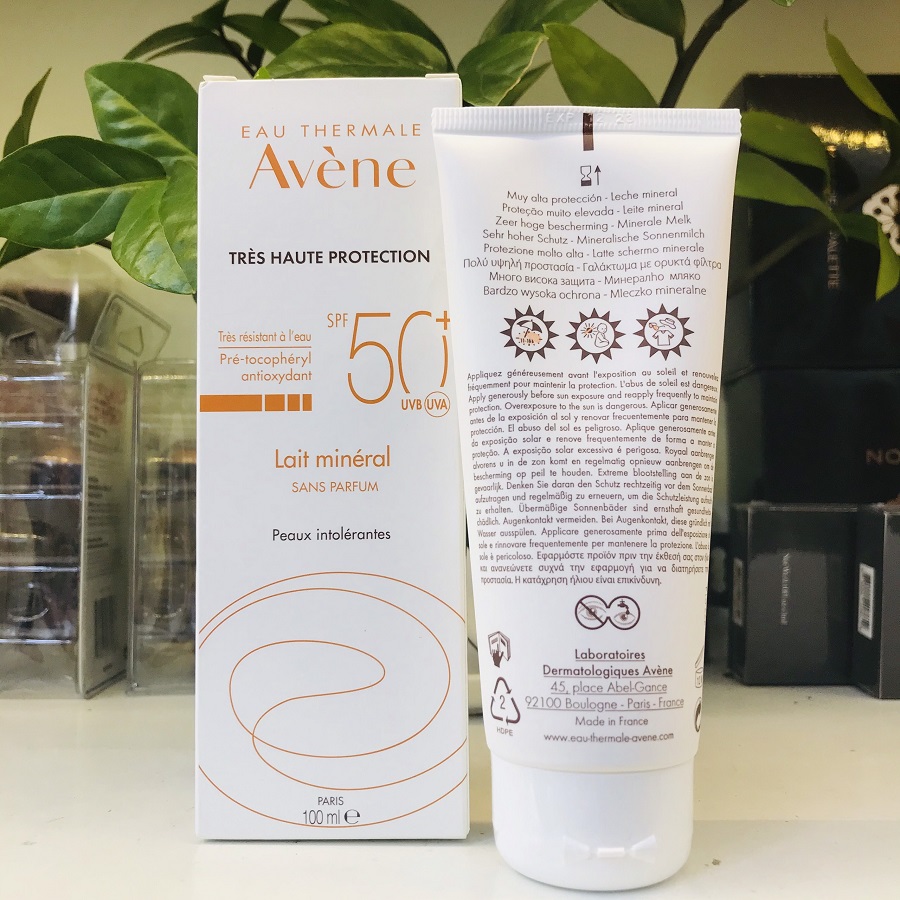 - Kem Chống Nắng Avene Vật Lý SPF 50+ Cho Da Nhạy Cảm 100ml chứa Pré-Tocophéryl, tiền chất dạng ổn định của Vitamin E và nước khoáng Avène có tác dụng chống oxy hoá mạnh, giúp bù lại lượng Vitamin E bị giảm đi do tác hại của tia UV, góp phần chống lại các gốc tự do gây tổn thương tế bào da và hỗ trợ làm tăng tính bảo vệ của hàng rào da.