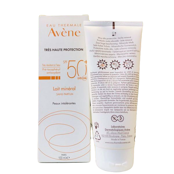 Kem Chống Nắng Avene Vật Lý SPF 50+ Cho Da Nhạy Cảm 100ml là sự kết hợp màng chống nắng từ khoáng chất với kích thước Nano có nguồn gốc tự nhiên M.P.I có khả năng bảo vệ rất cao, chống lại các tia UVB/UVA trong thời gian dài, tính năng chống thấm nước và mồ hôi.