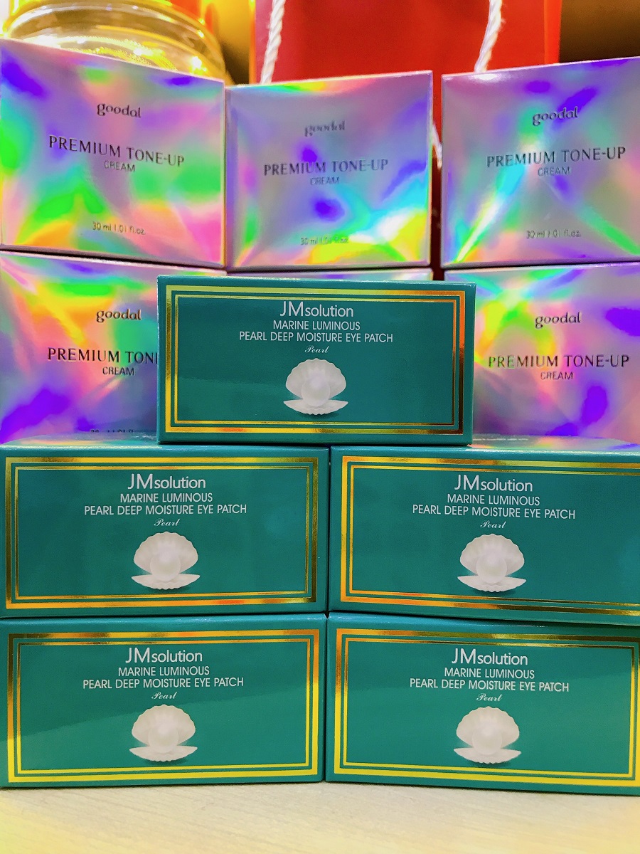 - Mặt Nạ Mắt Trị Thâm Quầng Mắt Tinh Chất Ngọc Trai JM Solution Marine Luminous Pearl Deep Moisture Mask có thành phần chứa chiết xuất từ tinh chất ngọc trai mang lại hiệu quả cao trong vấn đề chăm sóc vùng quanh mắt và trị thâm quầng mắt. Cung cấp dưỡng chất có lợi giúp da khỏe mạnh, mịn màng và căng tràn sức sống.