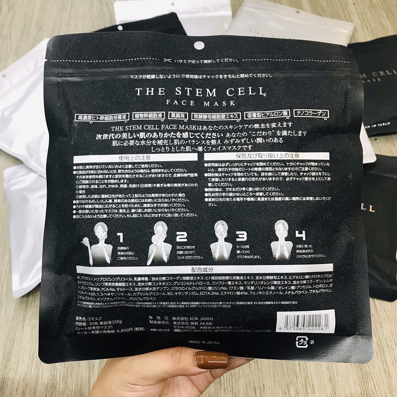 - Mặt nạ tế bào gốc The Stem Cell của Nhật được làm bằng 100% cotton, mềm mại, thân thiện với da, không gây kích ứng