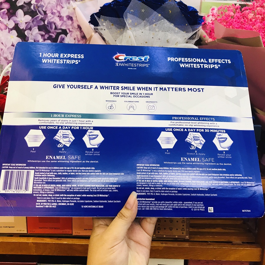 Thành phần miếng dán làm sạch ố vàng trên răng Crest 3D Professional Effects Whitestripes