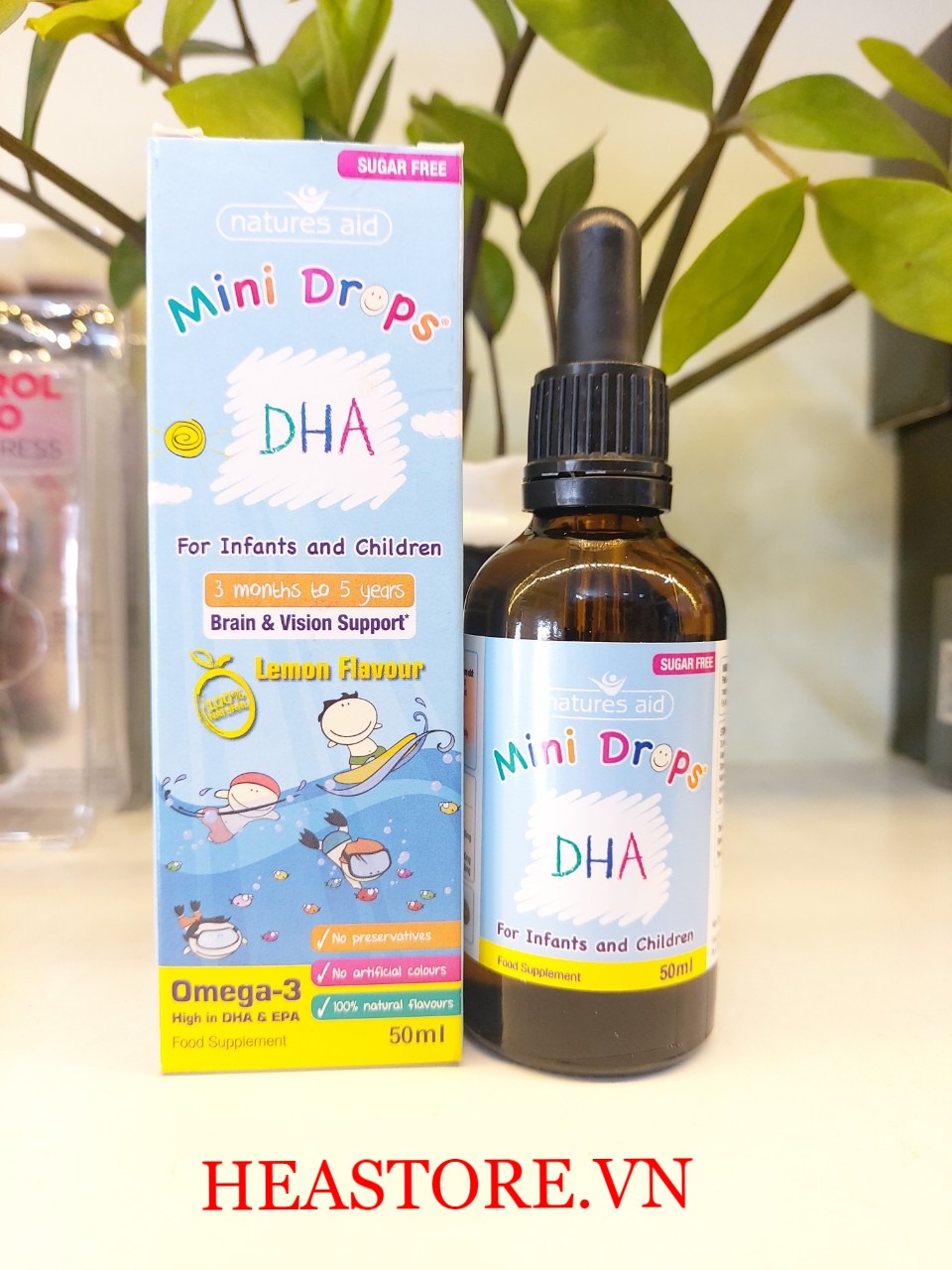 Vitamin Natures Aid DHA Drops là sản phẩm chiết xuất 100% từ tự nhiên, giúp hỗ trợ phát triển thị giác và trí não của bé trong giai đoạn từ 3 tháng tới 5 tuổi. DHA Drops được thiết kế dạng chai nhỏ giọt tiện lợi khi sử dụng, hương vị thơm ngon, dễ uống, không có mùi khó chịu như những sản phẩm thông thường khác.