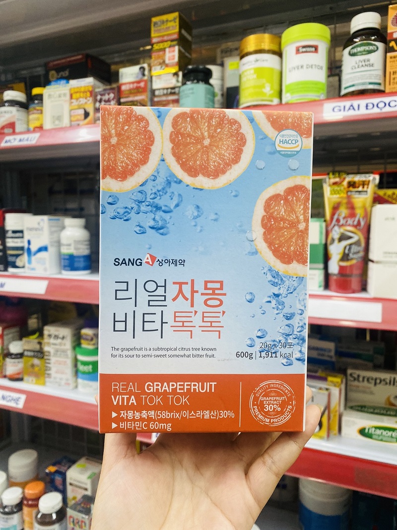 Nước ép bưởi là loại nước uống hỗ trợ giảm cân, làm đẹp da, tăng cường sức khoẻ được khá nhiều người biết đến hiện nay. Một trong những loại nước ép bưởi nổi tiếng được nhiều người ưa dùng là Nước ép bưởi giảm cân Sang A real grapefruit Vita Tok Tok.