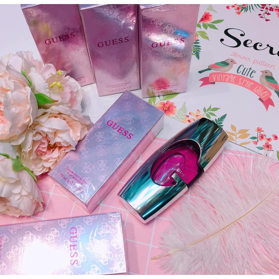 Guess đưa ra thị trường một loại nước hoa mới dành cho phụ nữ . Mùi hương thảo mộc ngọt ngào quyến rũ này dành cho nhưng phụ nữ trẻ ưa mạo hiểm và có tâm hồn tự do. Cô ấy coi trọng các giá trị: sự gợi cảm, sự xác thực, hấp dẫn hợp thời trang và vượt qua các phong tục. Nước hoa Guess đựng trong chai thủy tinh và kim loại có lồng chữ G của thương hiệu này.