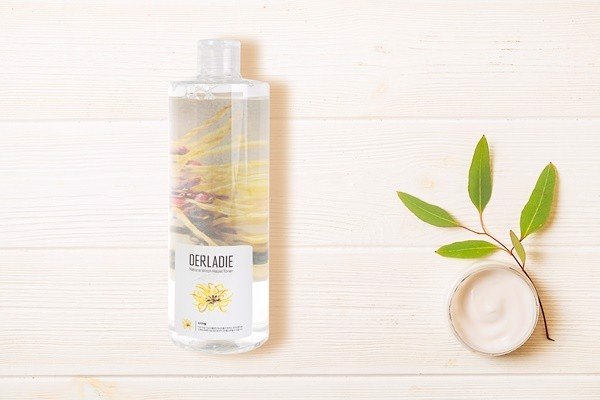 Bước 2: Đổ 1 lượng toner Derladie vào bông tẩy trang rồi thấm nhẹ lên bề mặt da.