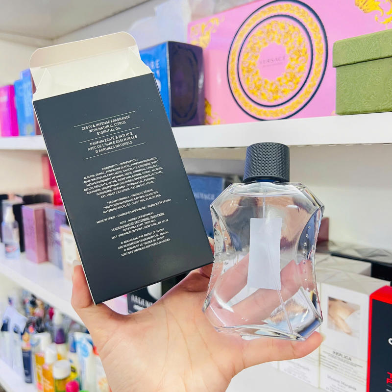 Nắp chai màu đen, logo Adidas nổi bật thể hiện phong cách thể thao và khỏe khoắn.