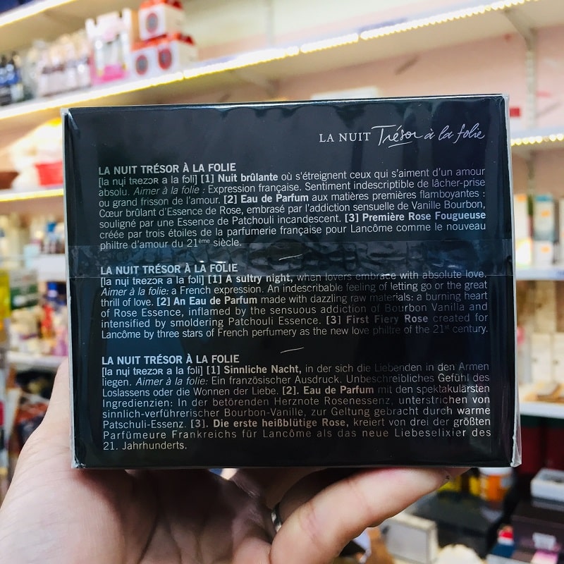 Nước hoa Lancôme La Nuit Tresor A La Folie là loại có nồng độ Eau De Parfum (EDP) với hàm lượng tinh dầu cao, hương thơm nồng nàn và bền mùi. Lancôme La Nuit Tresor A La Folie thuộc dòng nước hoa nữ, phù hợp để sử dụng vào ban đêm, trong thời tiết se se lạnh của mùa thu – đông.