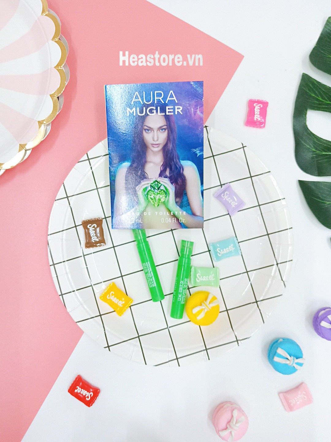 Nước hoa Aura Mugler là hương thơm khác với những gì chúng ta thường thấy. Aura không có sự cuồng nhiệt kiểu Angel, hay dẫn dụ như Alien. Aurathỏ thẻ, đập những nhịp đập chỉ đủ rung động lớp cây lá. Mùi hương xanh ngút ngát, xanh the mát, gợi lên sự đắm mình trong một khu rừng nguyên sinh, trong một thảm thực vật mướt lá tươi tắn và tươi mát trong lành.